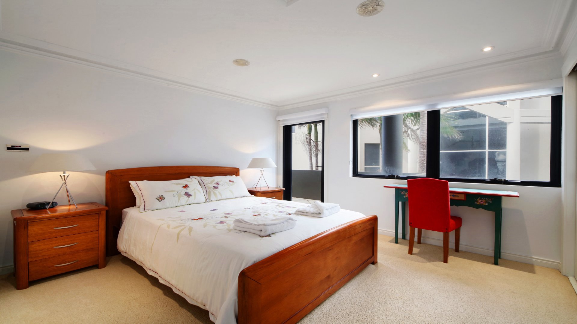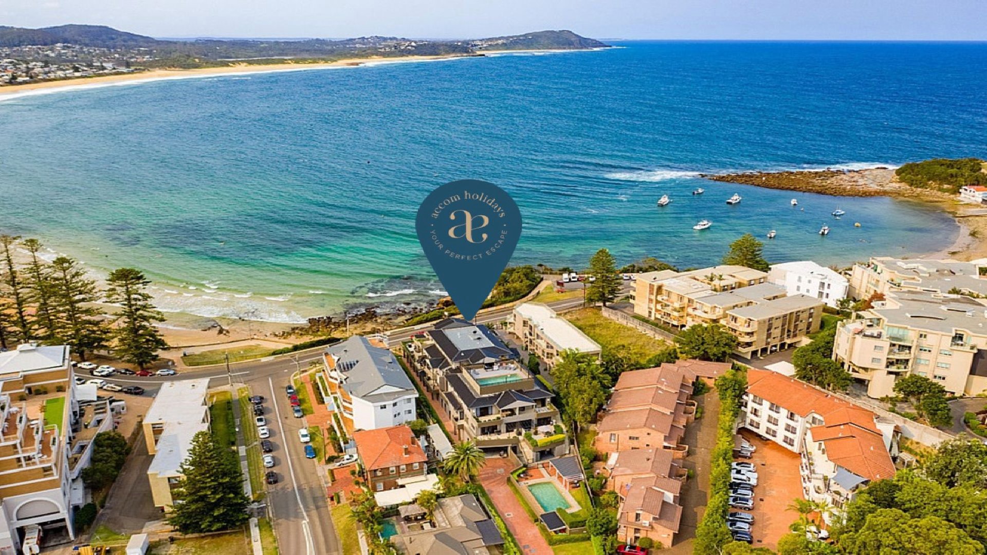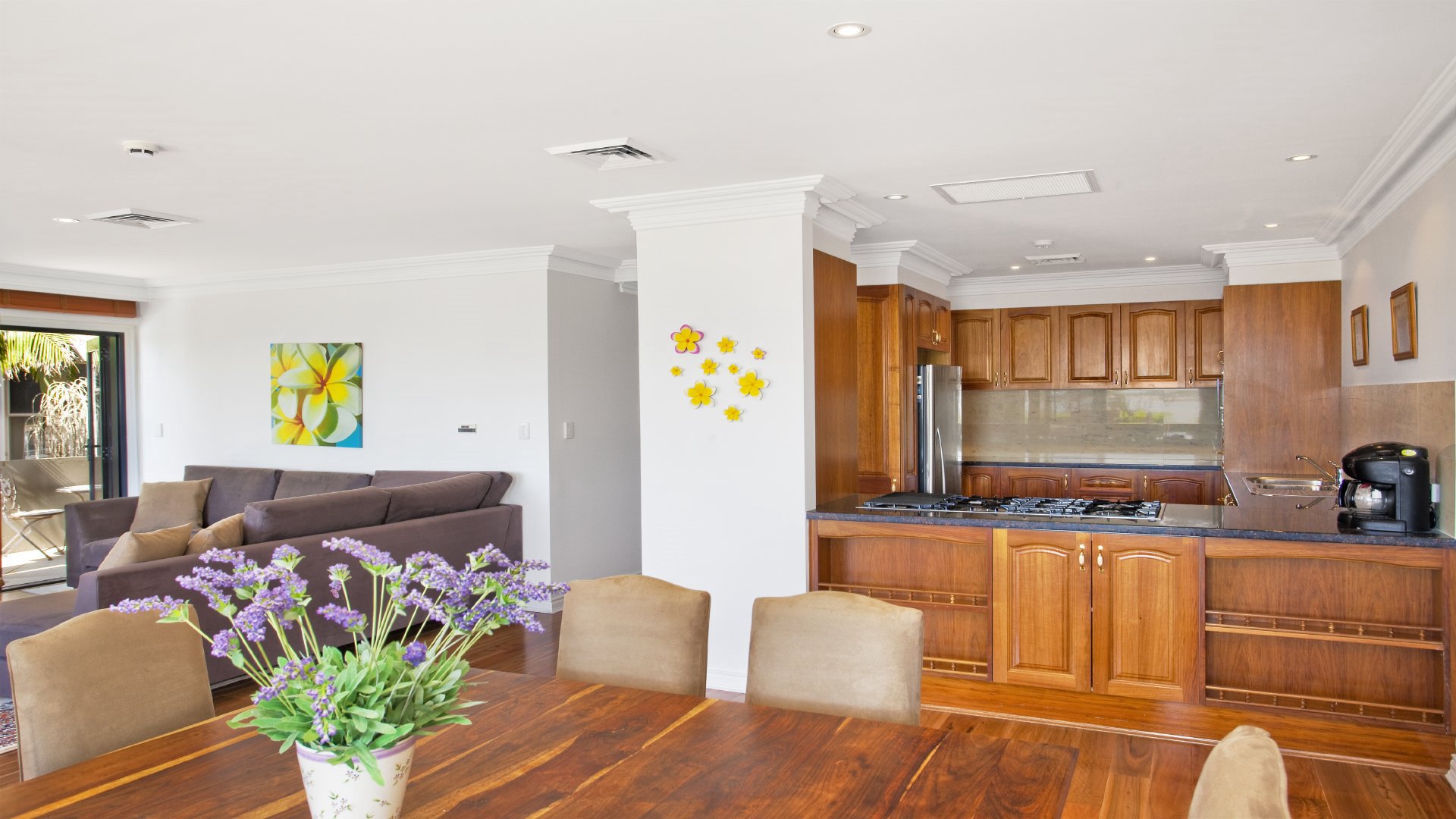 You cannot be much closer to the waterfront in Terrigal. Seaside at Sandalwood is directly opposite the ocean with unspoiled views of Terrigal beach. Just metres to Terrigal beach and esplanade, with an array of shops, cafes and restaurants, Seaside at Sandalwood is an excellent holiday getaway for couples and families. Master bedroom contains a queen bed, balcony, built-in robes, ensuite with a corner bath and shower. Bedroom 2 has a queen bed, balcony, and built-in robes, while bedroom 3 has two single beds and built-in robes and trundle single bed.