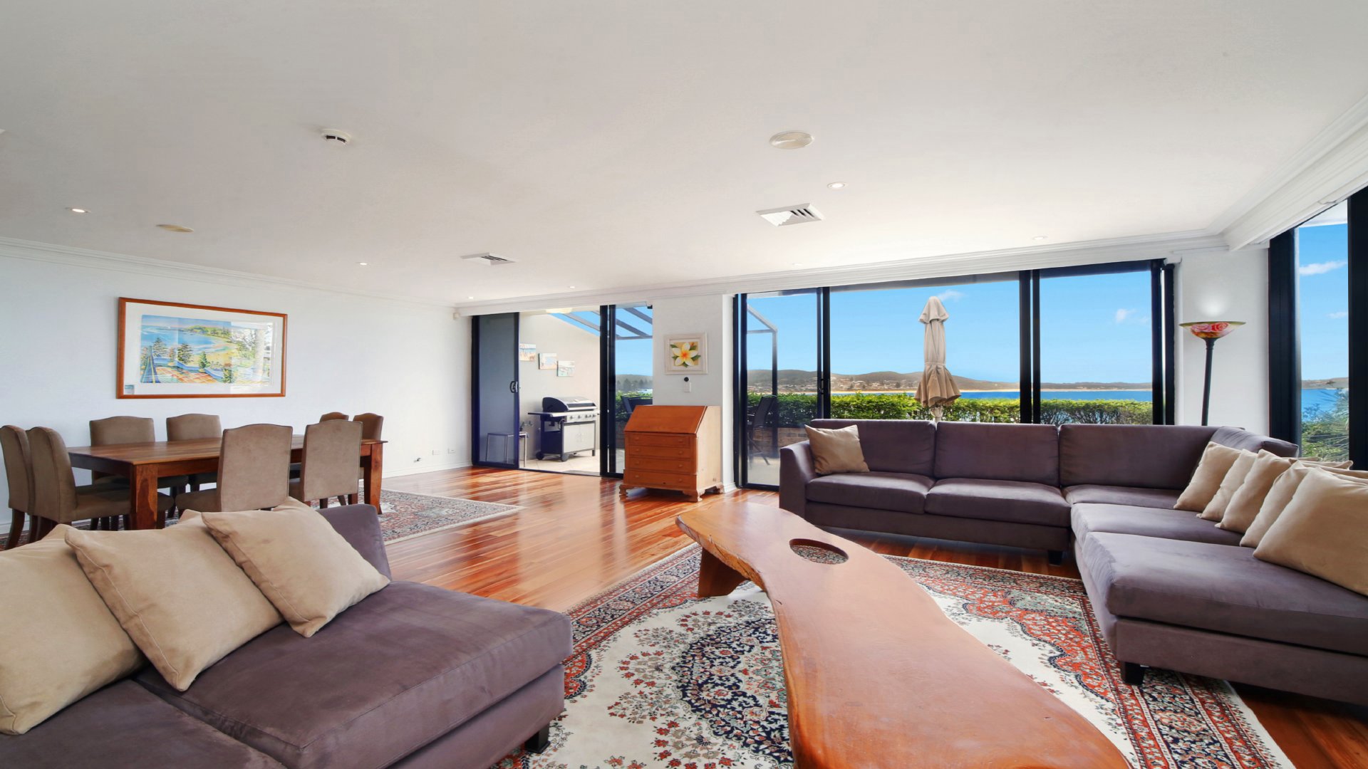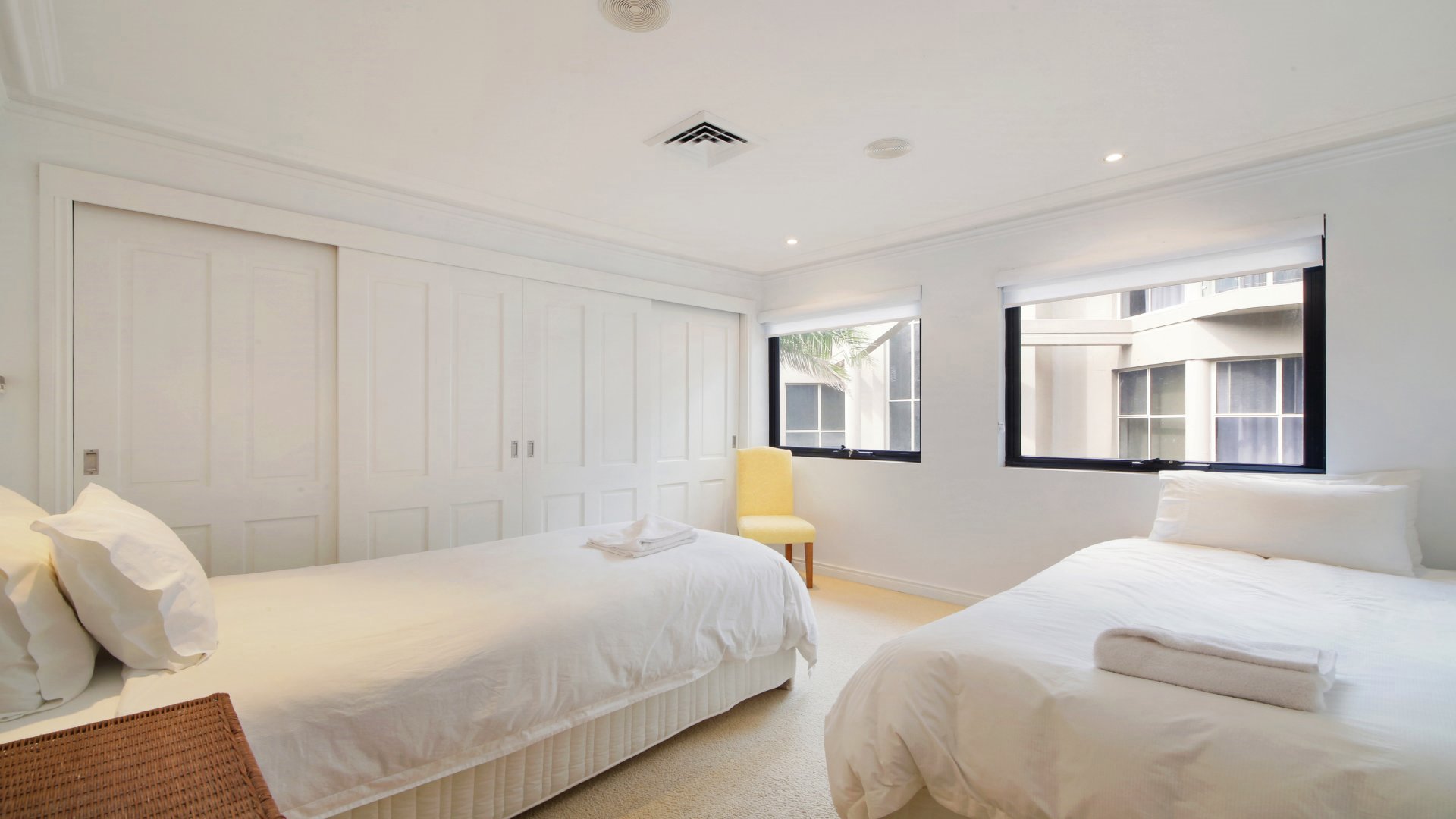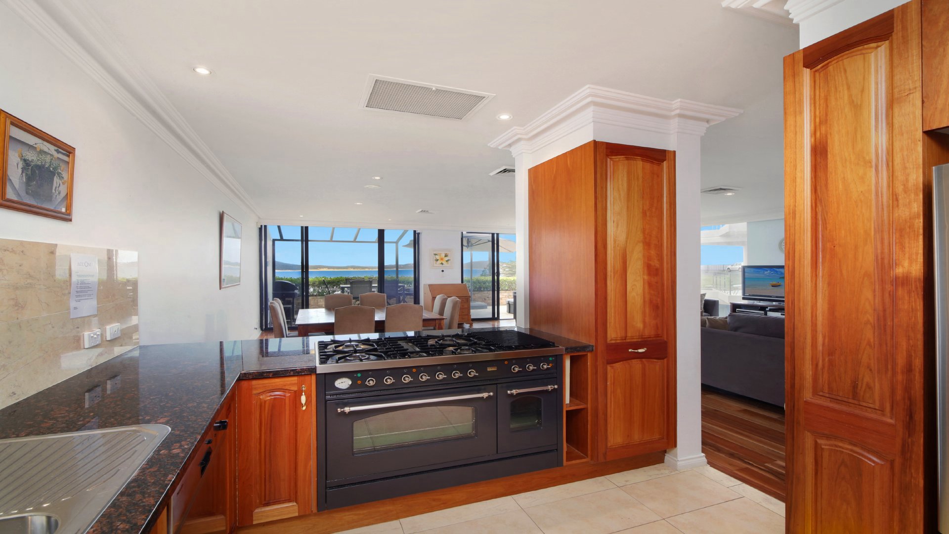 You cannot be much closer to the waterfront in Terrigal. Seaside at Sandalwood is directly opposite the ocean with unspoiled views of Terrigal beach. Just metres to Terrigal beach and esplanade, with an array of shops, cafes and restaurants, Seaside at Sandalwood is an excellent holiday getaway for couples and families. Master bedroom contains a queen bed, balcony, built-in robes, ensuite with a corner bath and shower. Bedroom 2 has a queen bed, balcony, and built-in robes, while bedroom 3 has two single beds and built-in robes and trundle single bed.
