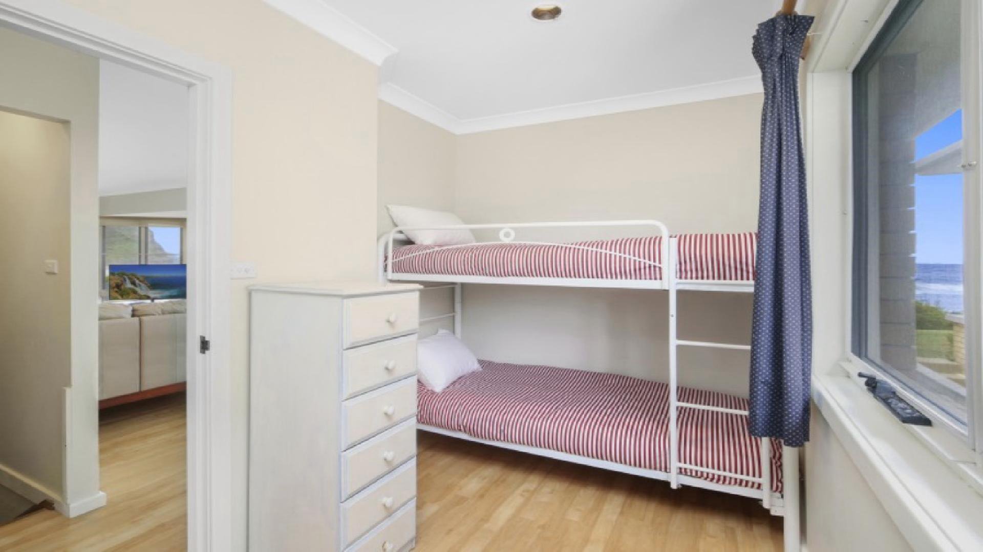 The Breakers is an older style holiday home, set right along North Avoca's patrolled beachfront and boasts picture-perfect views of North Avoca beach across to Avoca headlands. The Breakers is a two-storey house with beach facing windows in its main living space and kitchen. Sit back on the deck and enjoy the view, take a dip in the ocean, or have a BBQ while the kids play in its fully fenced front yard. The Breakers is just 3 minute drive to Terrigal shops, cafe's and restaurants. Upstairs you will find the Master bedroom with a king bed and balcony and ceiling fan. Bedroom 2 contains a queen bed, bedroom 3 contains a bunk bed; Downstairs bedroom 4 contains two single beds and ceiling fan while bedroom 5 contains a queen bed and en suite with shower, all bedrooms contain built-ins.