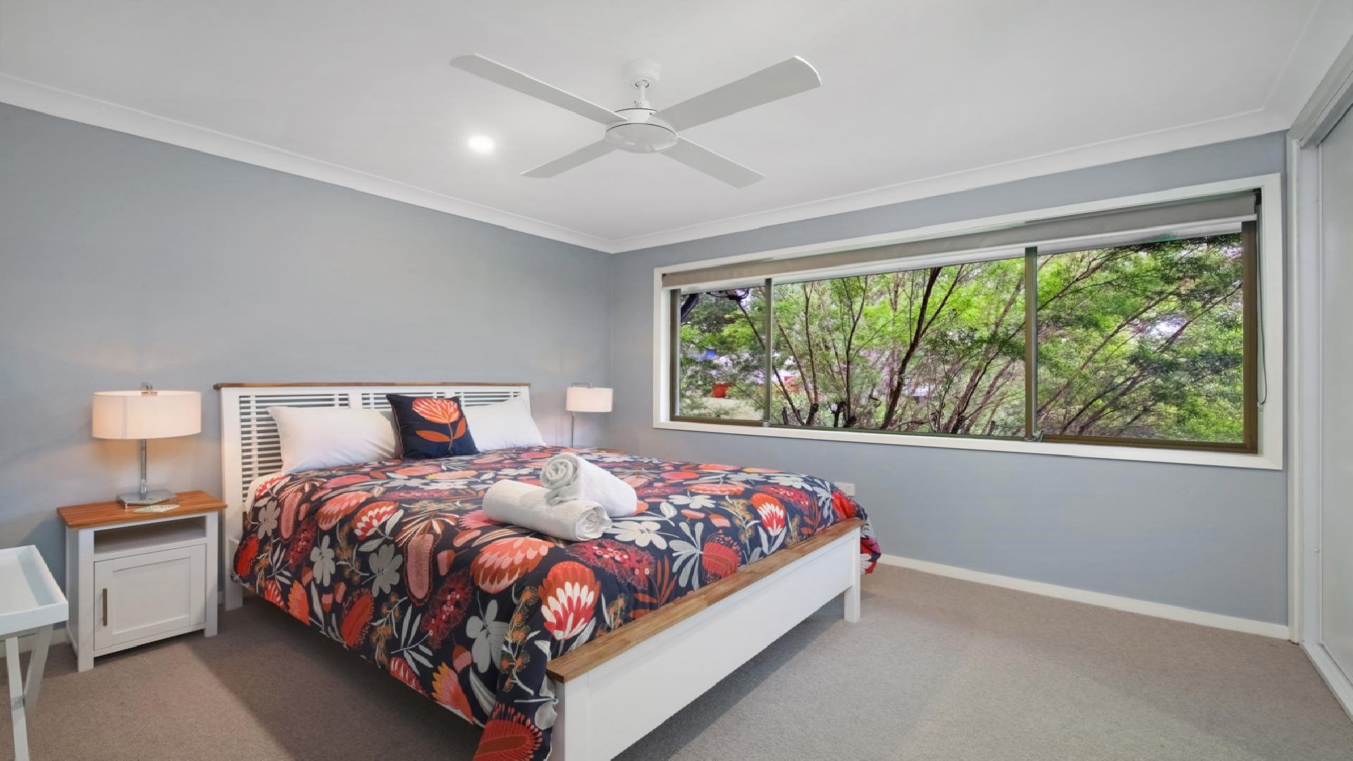 Nestled in the treetops at Macmasters Beach, 25 Ocean Drive is just moments drive from the ocean or a 800m walk via a beautiful bush track to the patrolled and dog-friendly Macmasters Beach. This family friendly holiday house has been renovated internally to offer a comfortable and affordable beach getaway. The property's leafy green surroundings offer a tranquil setting for families or couples to relax and recharge, whilst the large secure yard offers security for pets (on request only). Hear the sea from this light-filled house, watch the ocean from the front deck and enjoy gazing at the variety of native birds who call Macmasters Beach home. Enjoy popping down to the beach for a quick wave or two before heading home for afternoon BBQ's amongst the trees. The lounge room is equipped with board games, books and WIFI to ensure the kids are well entertained. With Bouddi National Park and its many walking trails at your doorstep and both Avoca or Killcare just 10 minutes drive away, your opportunities for outdoor adventures are endless. Master bedroom contains a queen bed and built-ins. Bedroom 2 contains a queen bed and built-ins with a quiet desk/ergonomic working space, while bedroom 3 contains a double bed. Bedroom 4 contains a bunk bed.