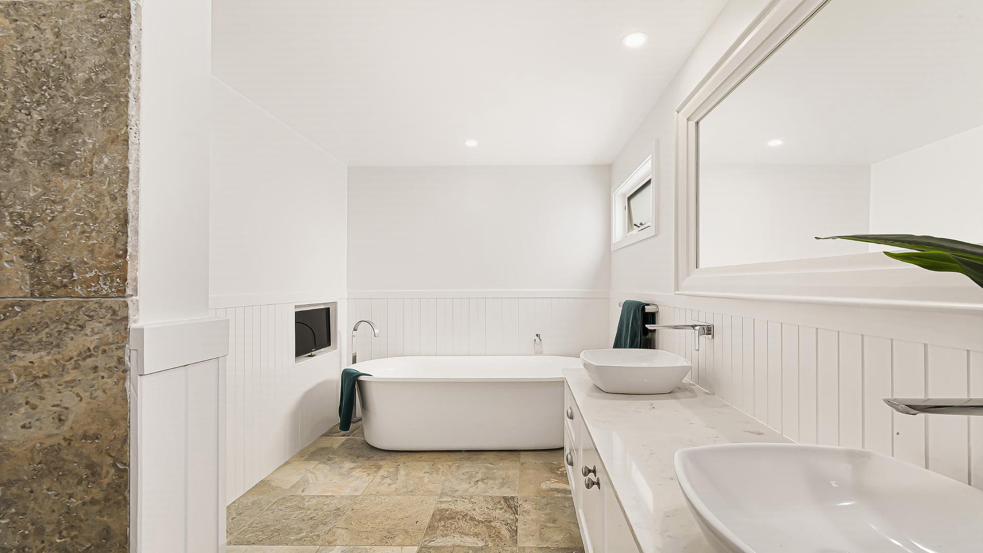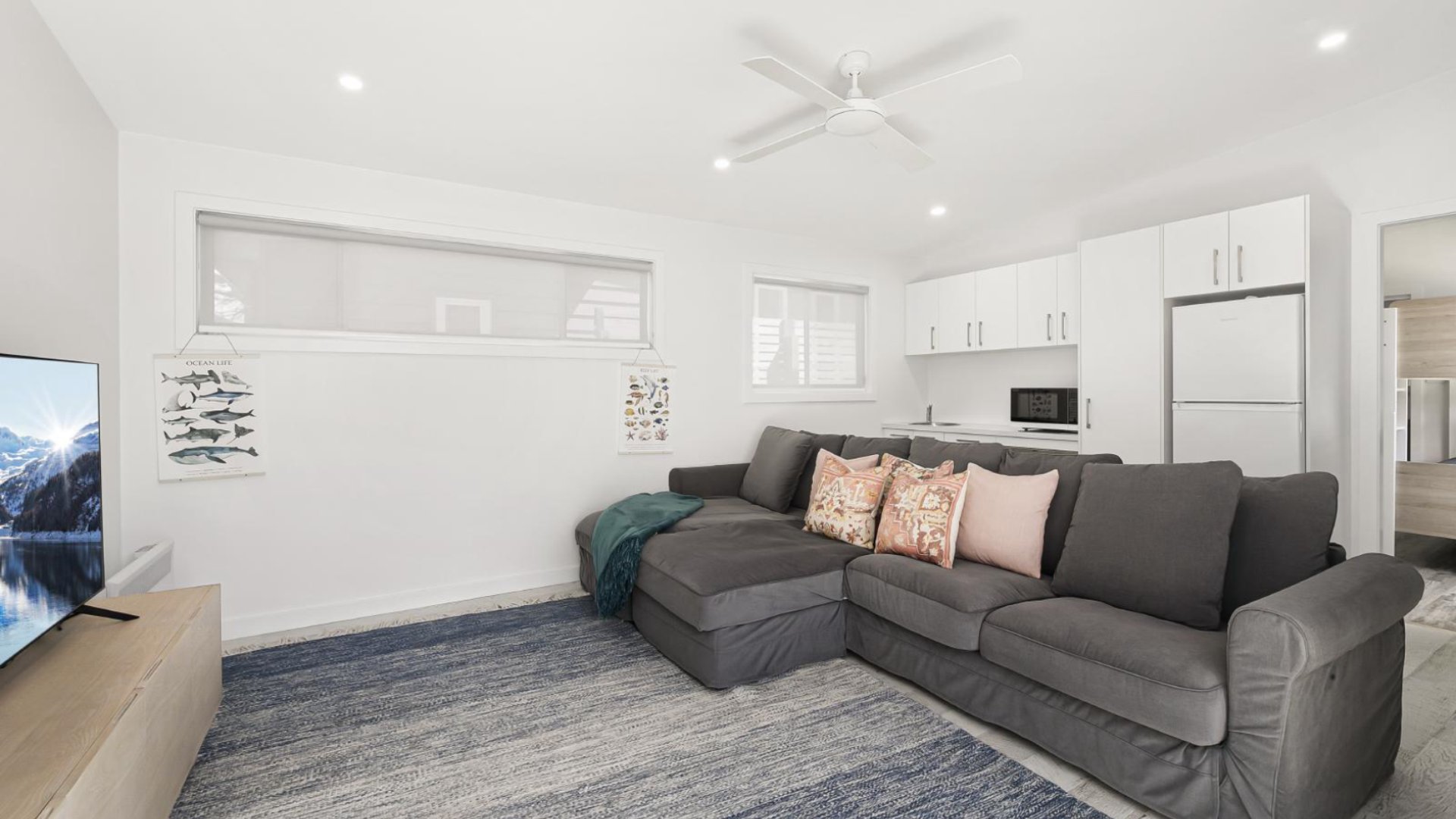 contained bunk house this property draws you in immediately. Whether you are cooling off in the pool, settling in for a meal in the alfresco area, or waking up in the master suite, you will be transported to a coastal paradise. Lahinch main house provides open plan living, kitchen and dining that flows out to the alfresco entertaining BBQ area overlooking the spectacular in ground pool. Master retreat located on the top-level contains a king bed, walk in robe and a large ensuite with a freestanding bath. Bedroom two on the ground level contains a queen bed, built in robes and ensuite. Bedroom three features 2 single beds and built-in robes; Bedroom four contains a queen bed and built-in robes. The separate bunk house has been built with two king single sized bunk beds, and a living room with a large comfortable sofa, TV, bathroom and a kitchenette. This is the perfect teenage retreat or a comfortable haven for a complete family wanting accommodation away from the main house.