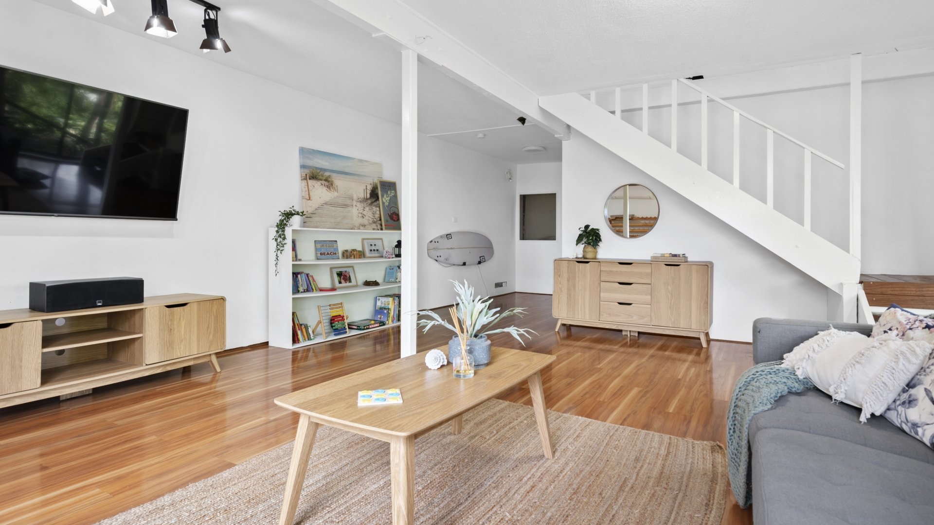 The upstairs main living flows out to the deck, while the large downstairs rumpus room is perfect for chilling with a movie (on the large screen TV), or as a space for the kids to play.