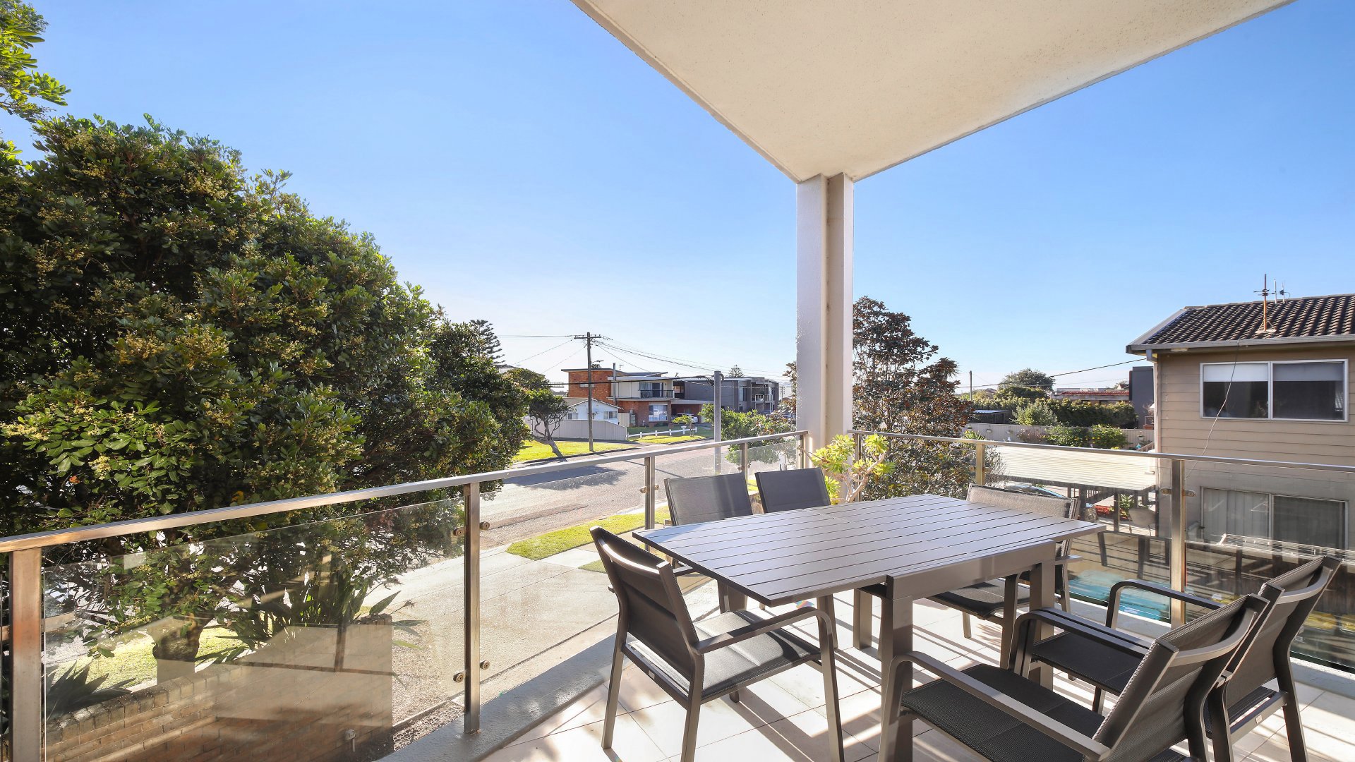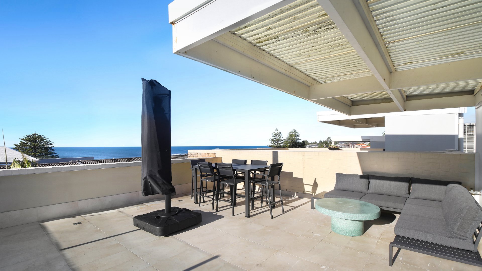 the sun and sea breezes. On the top level is the massive rooftop terrace offering stunning panoramic views across Blue Bay Beach, Toowoon Bay Beach, and The Entrance