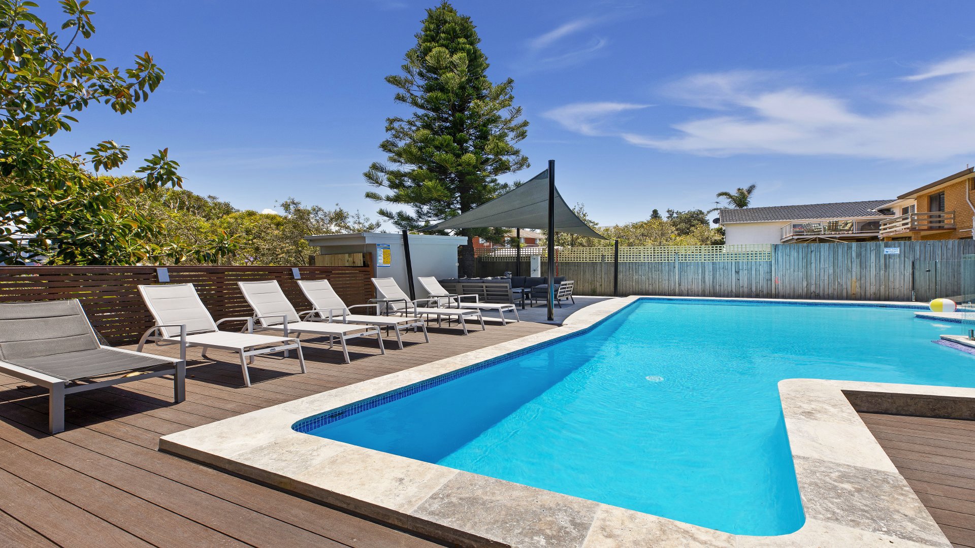 • Large outdoor pool, 200 metres walk to the sands of Forresters Beach (not patrolled) Security cameras located externally for security use only, back camera covered during stays; parking for two cars