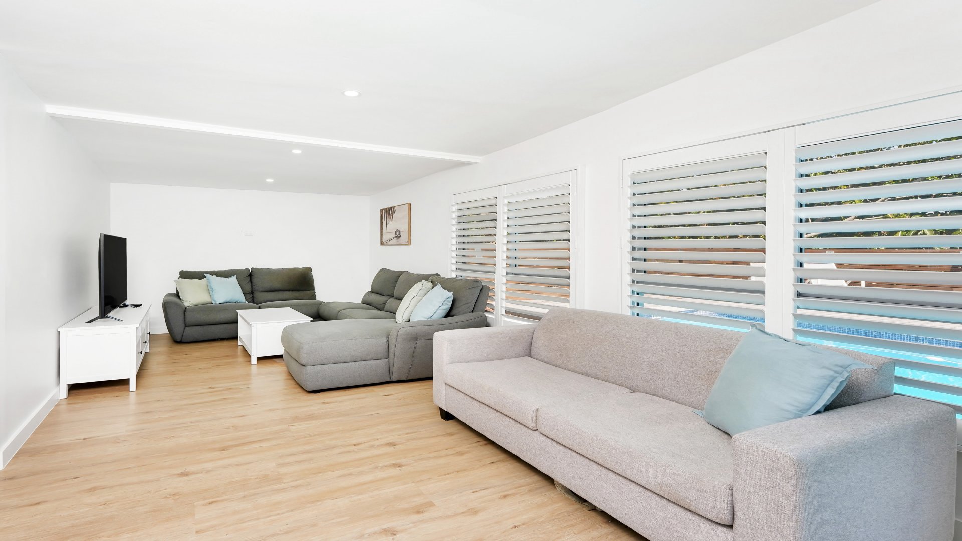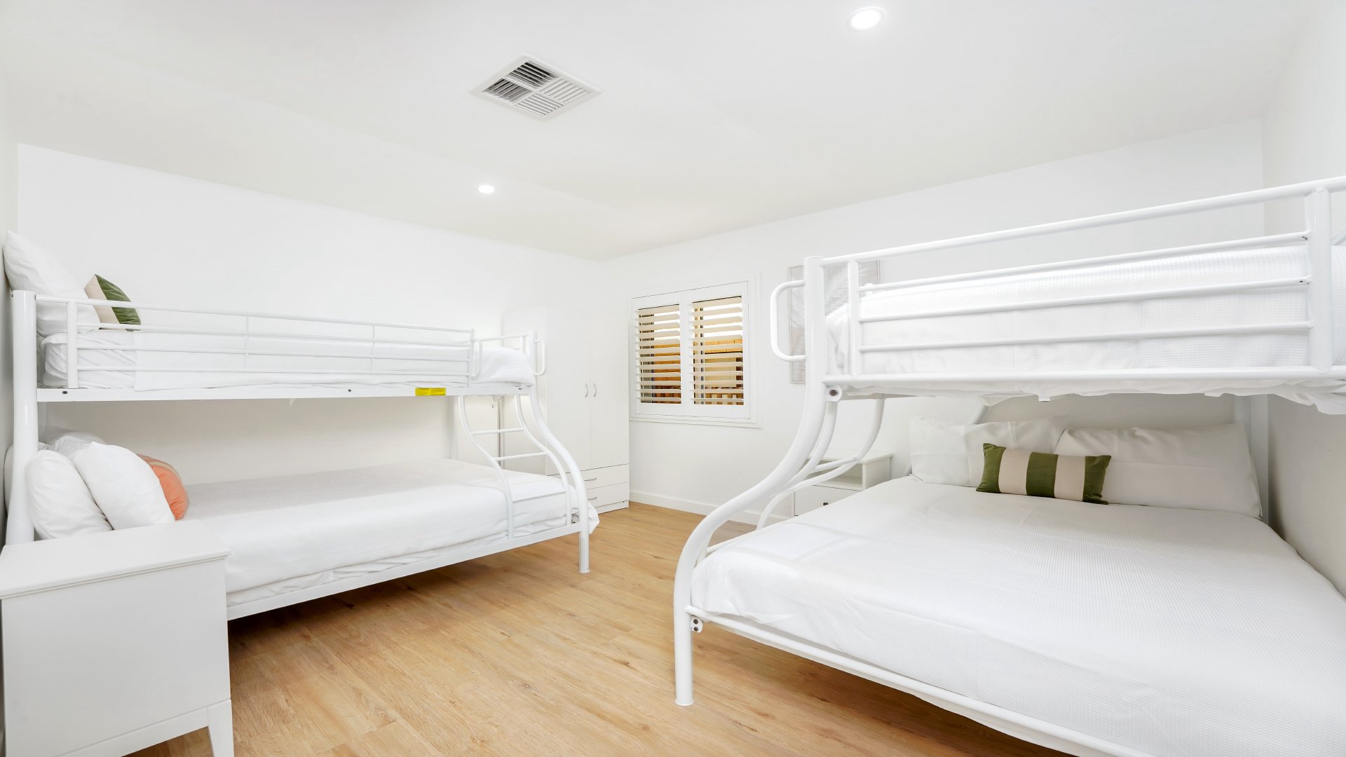 You can enjoy relaxing outdoors by taking in the ocean views from the front balcony or with the family out on the rear balcony looking over the pool. Upstairs at Beach Breeze you will find a bright living / dining area, a well equipped kitchen and the master bedroom with ensuite. An additional living room downstairs that flows out to the generous pool and deck area with additional outdoor dining and lounge setting. On this level is the second bedroom with queen and third bedroom with two tri-bunk beds.