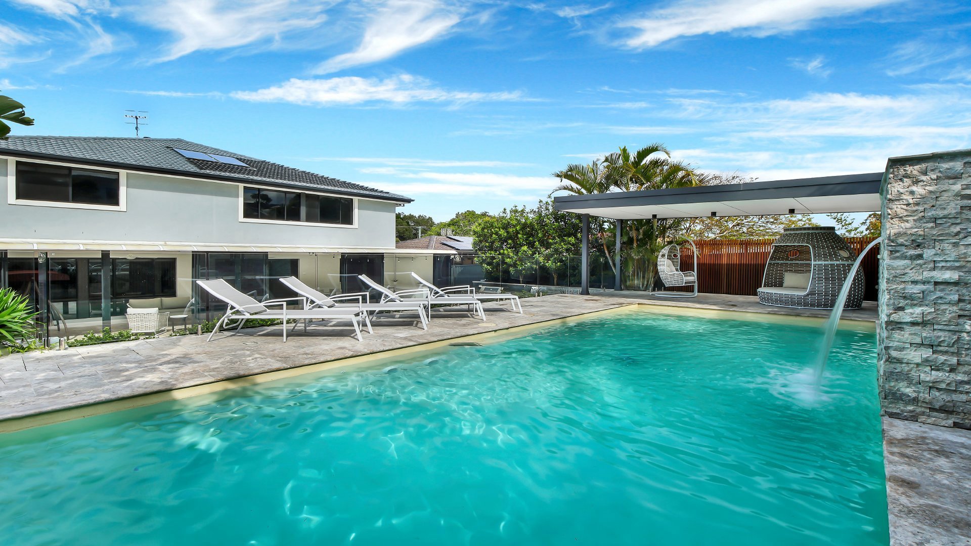 Solis features a spacious lounge room that connects to the dining and kitchen area and then flows out to a seamless indoor/outdoor sunroom with additional dining and lounge seating overlooking the pool. There are plenty of places to relax and enjoy all that Solis has to offer with an additional lounge area upstairs and games room downstairs. The property is located in a residential neighbourhood yet with cafés, restaurants, and shops only a short distance away! Made up with five bedrooms and four bathrooms, four of the five bedrooms are found upstairs. The master bedroom contains a queen bed, walk in robe and ensuite, bedroom two contains a queen bed, bedroom three contains a queen bed and x2 single beds, and bedroom four contains a queen bed. Upstairs lounge room with sofa bed and the fifth bedroom downstairs contains a queen bed.