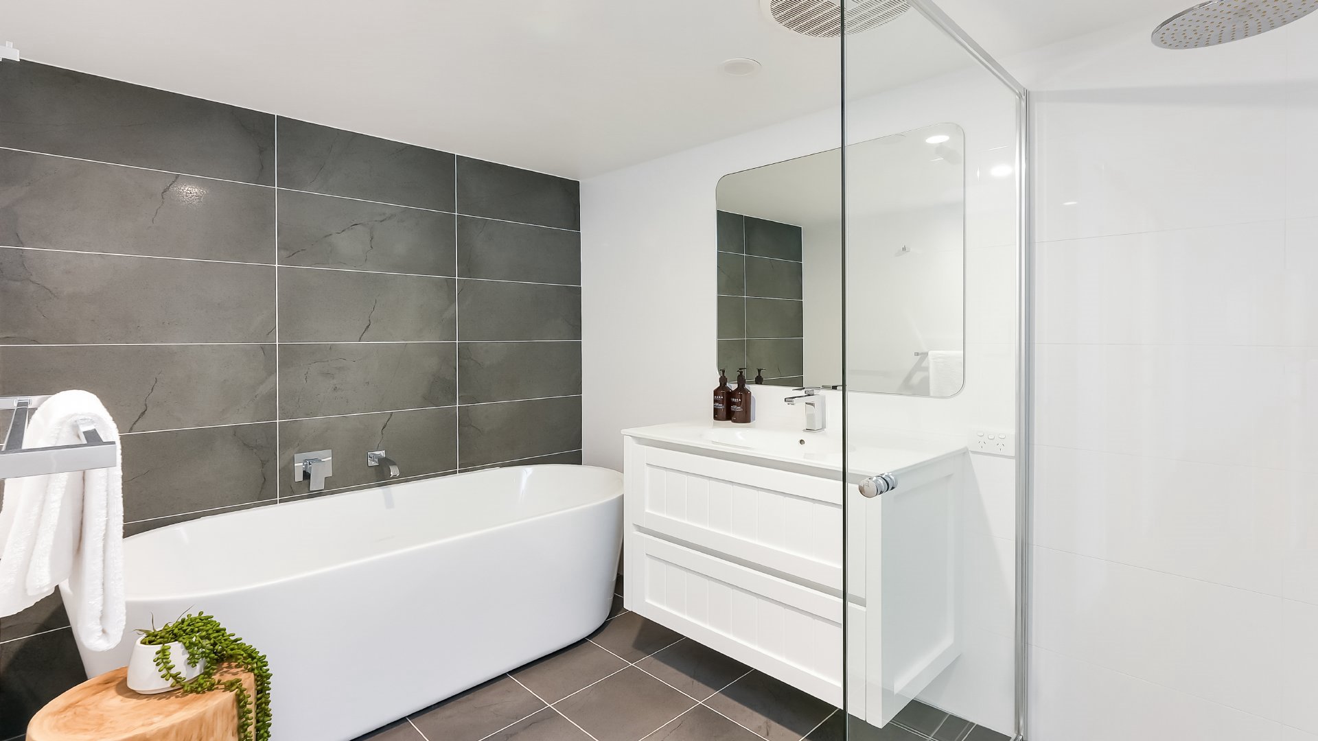 - Living space contains lounge seating for 6, Smart TV and split system air-conditioning