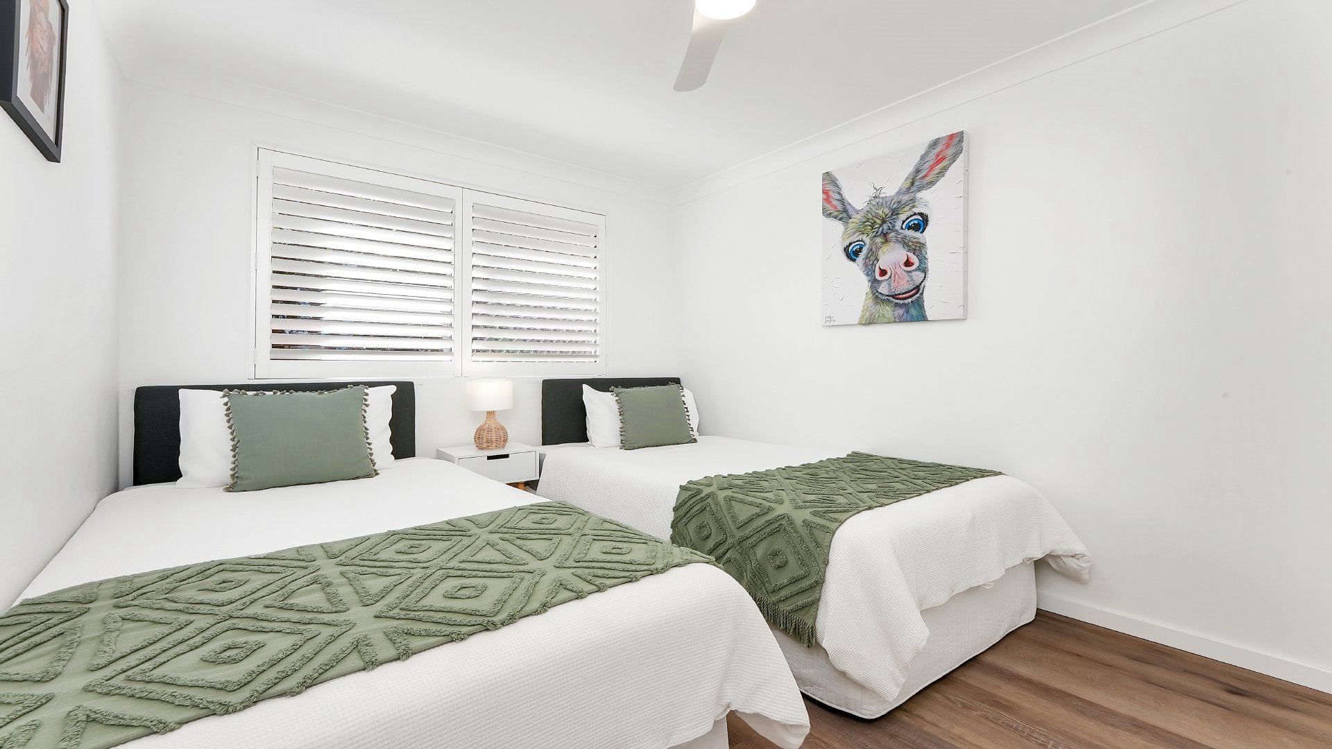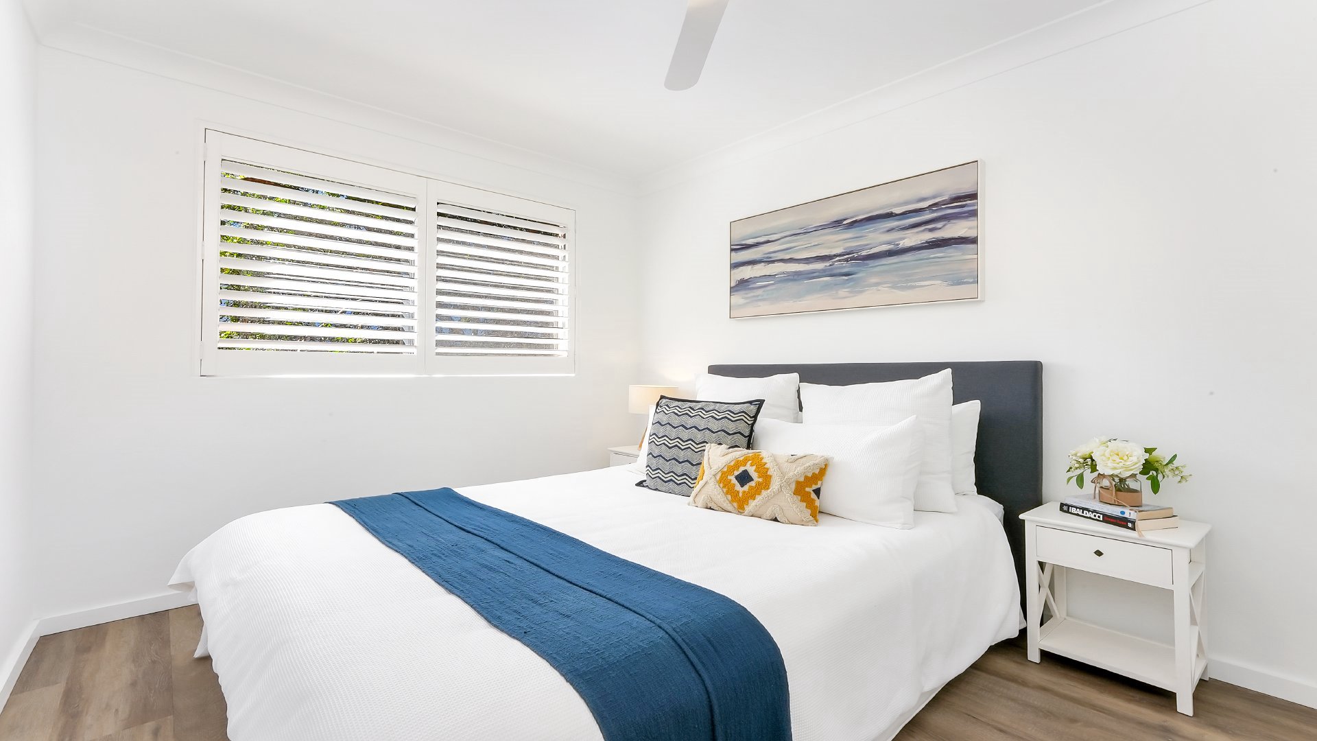 Terrigal Bay #13 is the ideal family apartment set right in the heart of Terrigal and only a 125 metre flat walk to the beach and across the road from local cafes and restaurants. Located in the Terrigal Bay complex on Campbell Crescent, this apartment offers the perfect blend of modern comfort and amenities to accommodate all guests. The apartment is located in a gated complex with a communal swimming pool and secure undercover parking for one car. The spacious lounge room provides seating for the whole family and features a Smart TV and a split system air-conditioner for ultimate comfort. Master bedroom contains a queen bed with ceiling fan. Bedroom two contains a queen bed with built ins and ceiling fan. Bedroom three contains two single beds with built ins and ceiling fan.