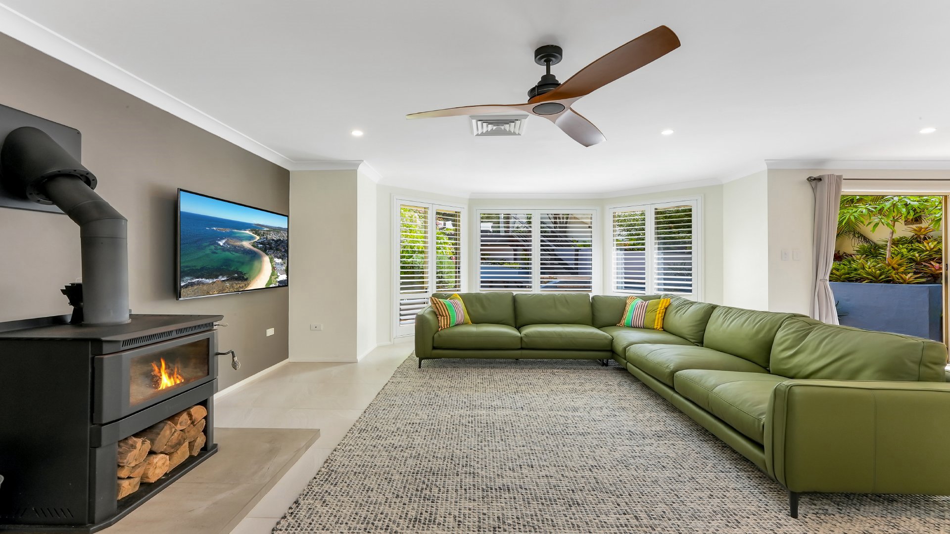 The property features an undercover BBQ area, manicured gardens to soak up the sun and a built-in pizza oven. Inside you have everything needed for the perfect stay including a fireplace in the downstairs lounge room, ducted air-conditioning throughout and Wi-Fi access.